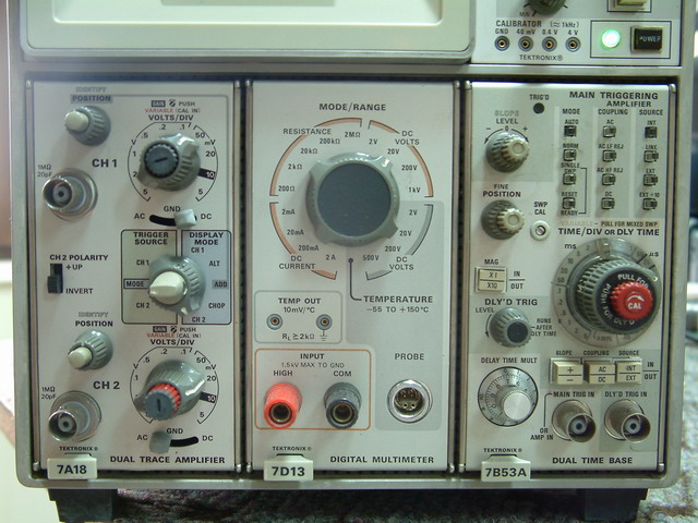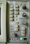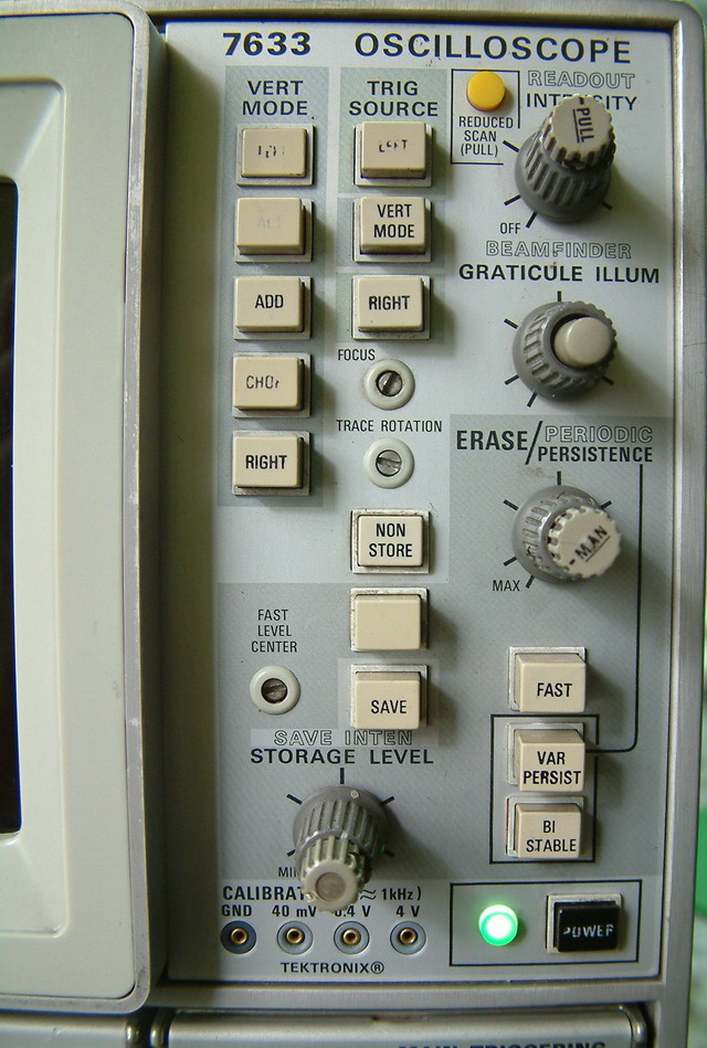 Tektronix 7633 tipusú 100 MHz-es oszcilloszkóp analóg tárolóval,  cserélhető betétfiókokkal.