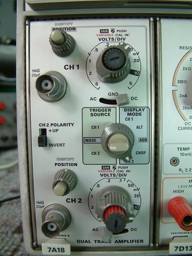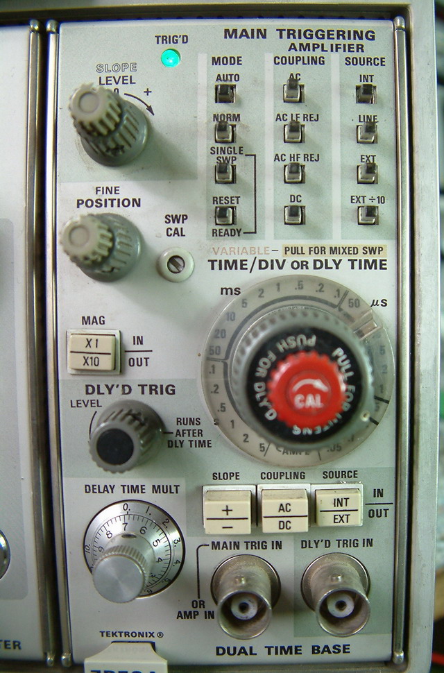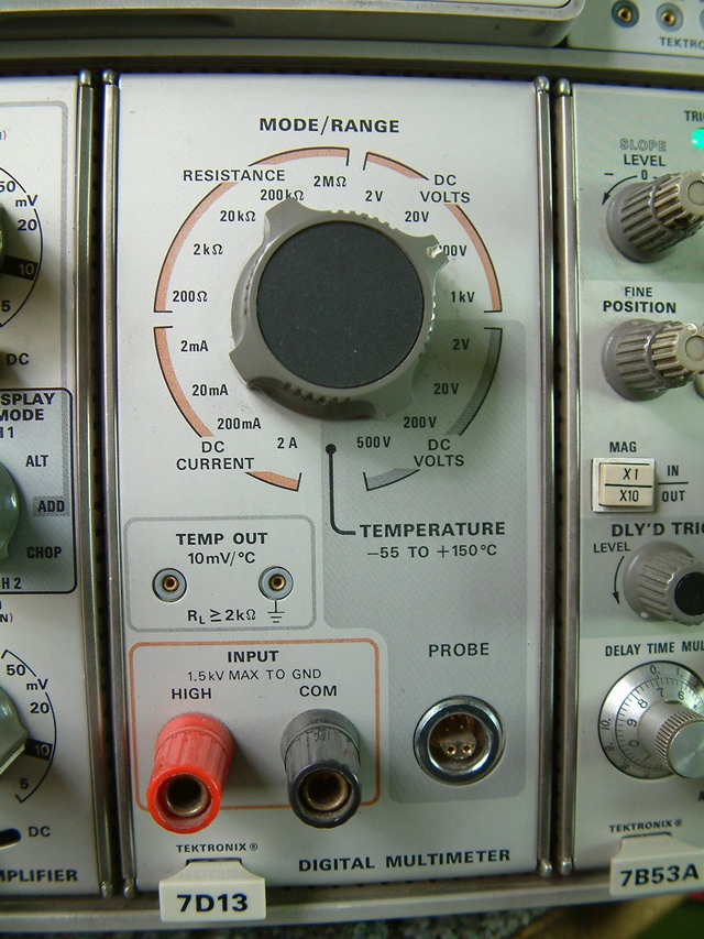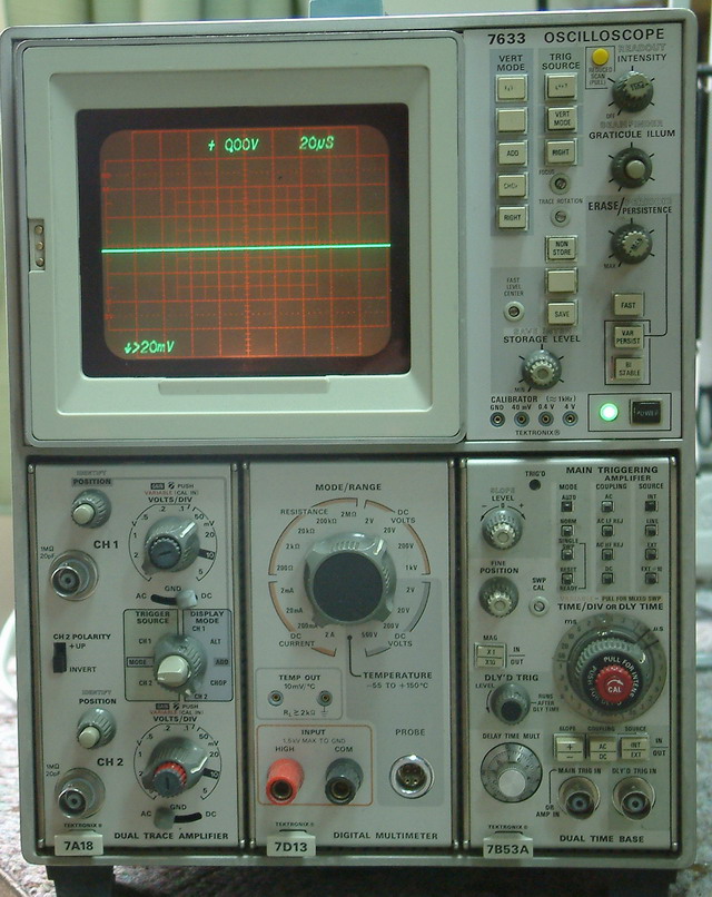 Tektronix 7633 tipusú 100 MHz-es oszcilloszkóp analóg tárolóval,  cserélhető betétfiókokkal.